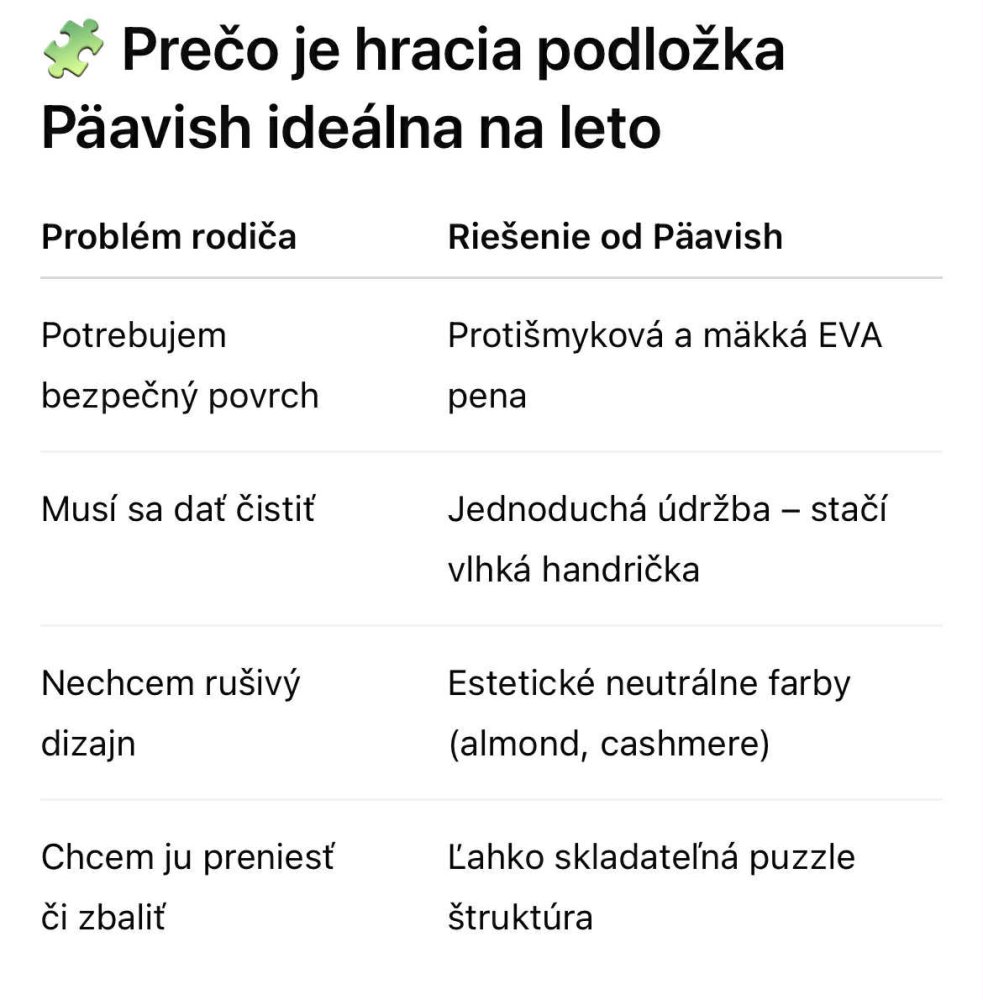 Začnite od podlahy! Letné dni doma nemusia byť plné chaosu ani obrazoviek. S hracou podložkou Päavish vytvoríte štýlový, bezpečný a praktický priestor, kde sa vaše dieťa môže hrať, oddychovať aj rozvíjať.